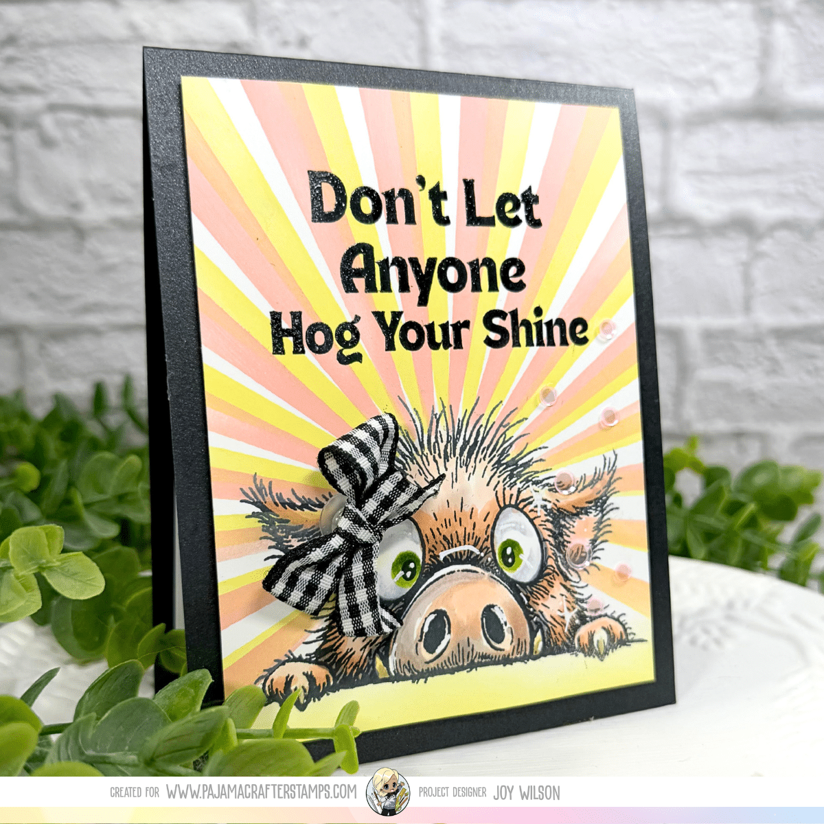 Interactive Card Tutorial: Hog Your Shine Stamp Set with Sunburst Stencil & Copic Coloring