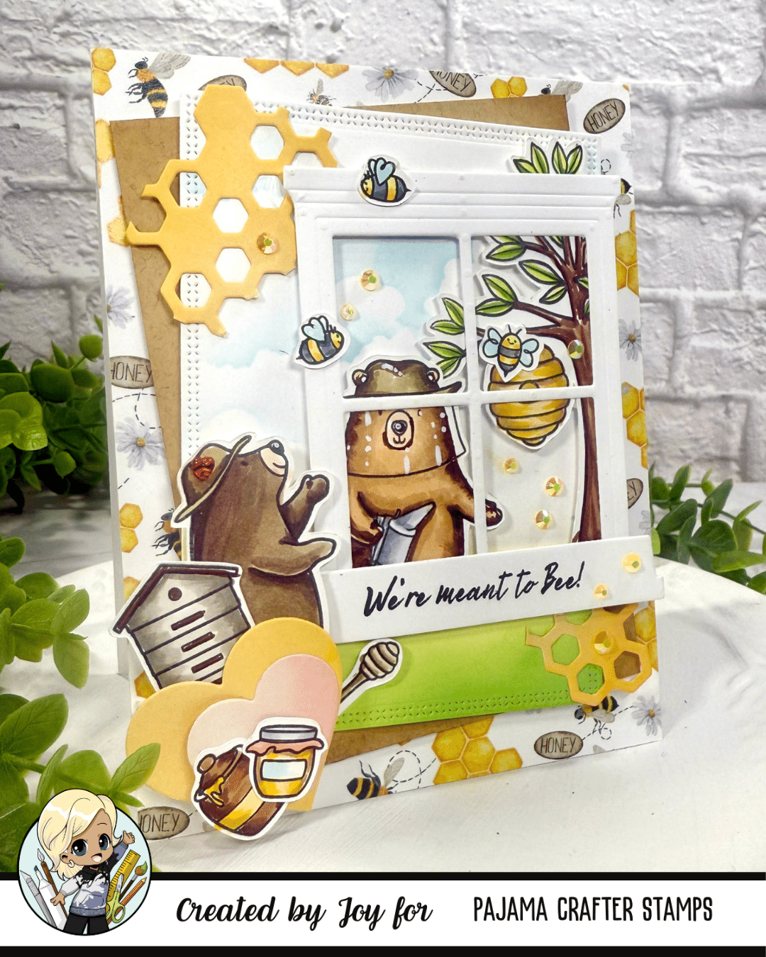 Today’s Lunch and Chat with Joy was full of sweetness — and not just because of the honey! We spent our crafty session building a charming card scene using the Bruno the Beekeeper stamp set from Pajama Crafter Stamps, illustrated by the ever-talented Jane’s Doodles.